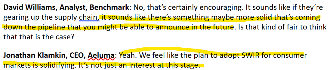 Let’s wrap this up—we see loads of Apple people following Aeluma. We see Sony investment people following Aeluma. We are told during the Fireside Chat that Aeluma is pursuing partnerships and the mobile timeline is clear now. We hear yesterday that the supply chain is gearing up for SWIR sensors in consumer devices. Am I just a fanboy or is this not obvious to everyone?